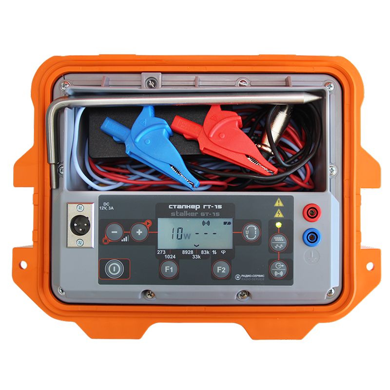 Генератор ГТ-15 дополняет приемник, генерируя стабильные сигналы для активного поиска. Его рабочие частоты включают 273, 1024, 8928, 32768 и 83077 Гц, обеспечивая совместимость с ПТ-24 и возможность работы на различных глубинах. Регулировка выходной мощности гибкая: от 1 до 15 Вт на нагрузке от 0,5 до 600 Ом, что позволяет адаптировать сигнал под тип трассы, расстояние и окружающую среду. Низкая мощность подходит для чувствительных кабелей, а максимальная — для глубоких или длинных коммуникаций, таких как магистральные трубопроводы. Корпус генератора прочен, защищен от пыли и влаги, а простота подключения (через зажимы или индукционную антенну) упрощает подготовку к работе.