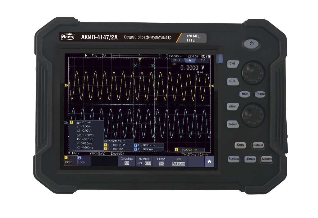 Одной из ключевых характеристик осциллографа-мультиметра АКИП-4147/2 является его двухканальный режим работы. Это означает, что прибор может одновременно измерять и отображать два различных электрических сигнала, что особенно полезно при сравнительном анализе или измерении взаимосвязи между сигналами. Это позволяет провести более полный анализ сложных систем и процессов.