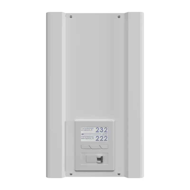 Стабилизатор рассчитан на номинальную мощность до 7 кВА, что делает его подходящим для питания как отдельных мощных приборов, так и целых групп оборудования в жилых домах, офисах или производственных помещениях. Рабочий ток достигает 32 ампер, что также говорит о его способности выдерживать значительные нагрузки. Устройство использует тиристорный тип ключей, что обеспечивает бесконтактное переключение и, как следствие, повышенную надёжность и долговечность узлов стабилизации. Электронное управление позволяет добиться высокой точности стабилизации — отклонение выходного напряжения в рабочем диапазоне составляет всего 2,7%, что полностью исключает вредное воздействие скачков на технику.